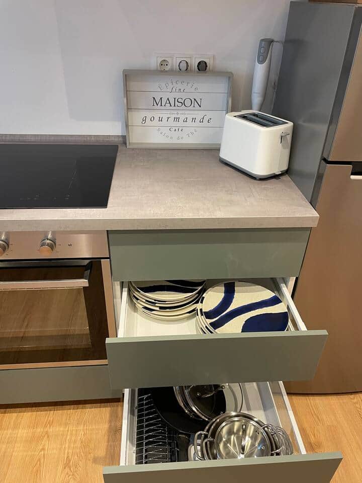 Mixeur, Chaise haute bébé, Cafetière, Ustensiles de cuisine, Lave-vaisselle, Cuisinière, Four, Réfrigérateur, Épices, Grille-pain, Aspirateur